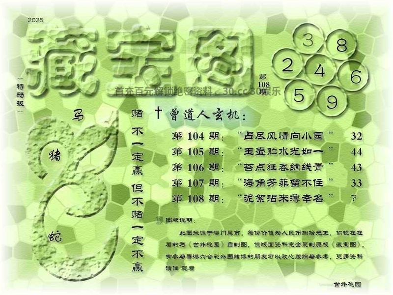 097期:四肖四码 {兔15}{30}{鸡21}{猪19}
